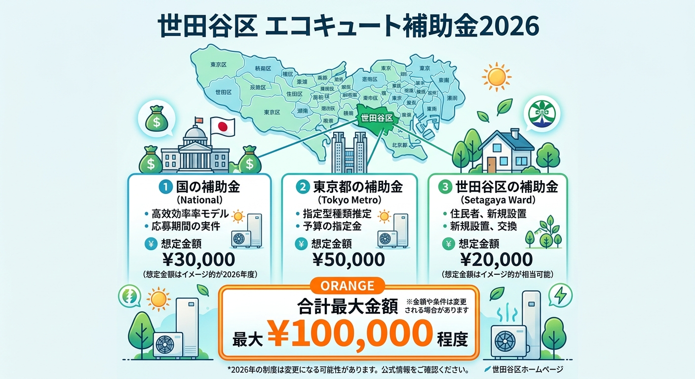 世田谷区 エコキュート補助金2026|最大○万円の内訳と申請