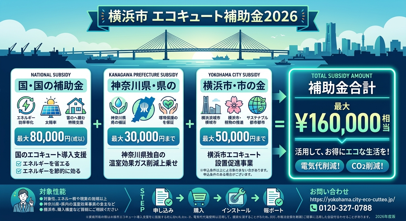 横浜市 エコキュート補助金2026|最大○万円の内訳と申請