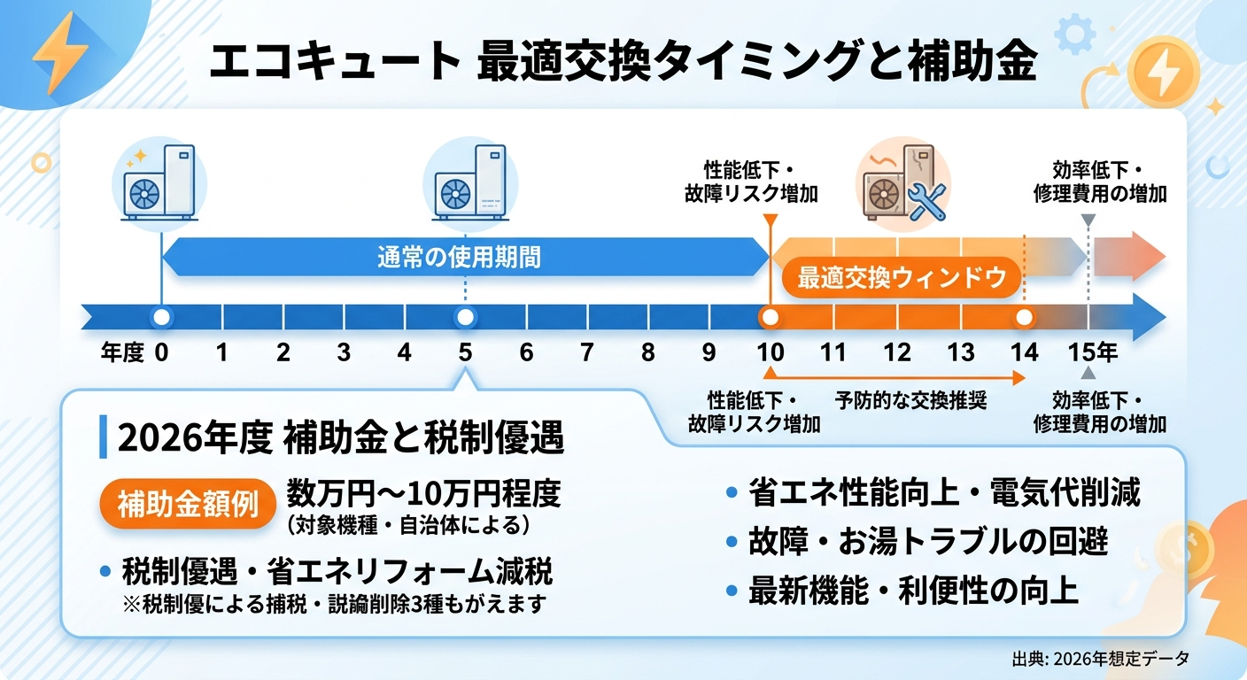 エコキュート交換時期と補助金2026|寿命・費用・節税を徹底解説