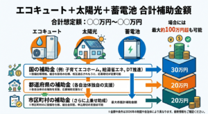 エコキュート補助金 太陽光・蓄電池との併用で最大いくら?新着!!